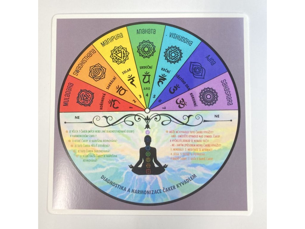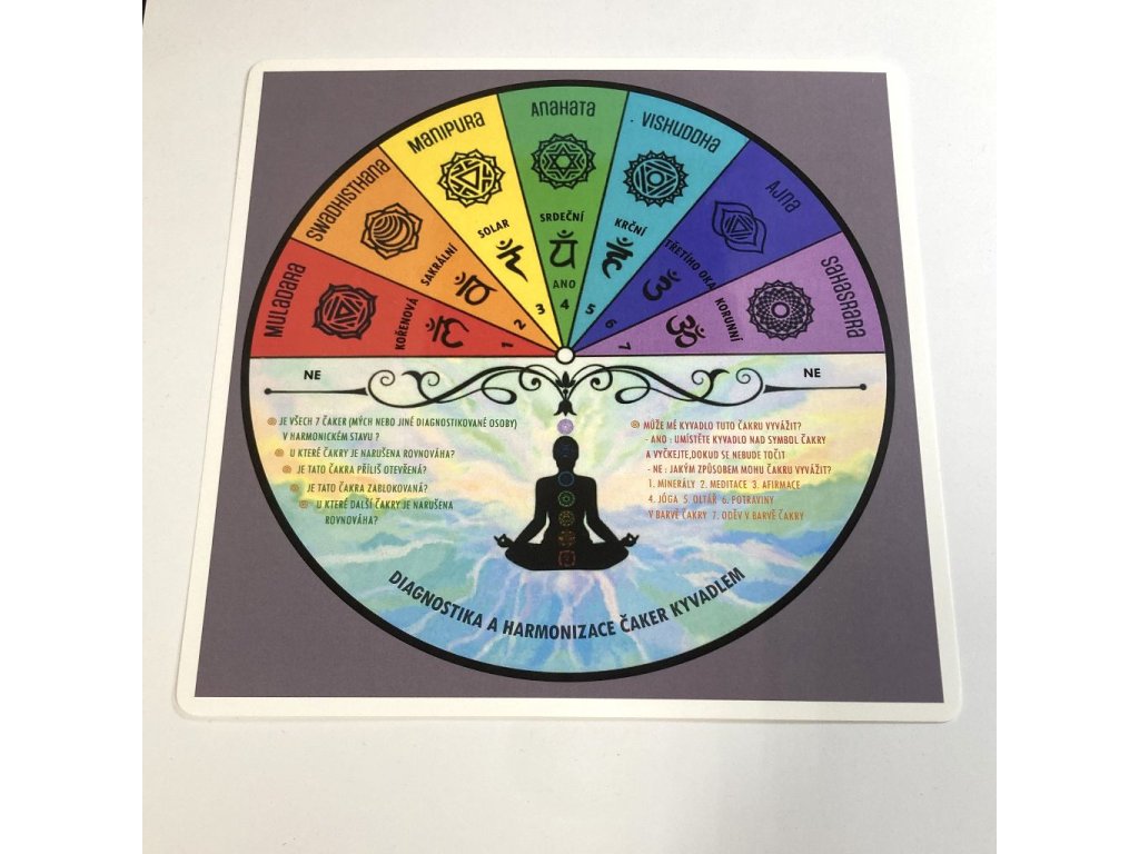 Tato precizně zpracovaná deska pro práci s kyvadlem se stane vaším průvodcem při diagnostice energetických center. Středový symbol sedmi čaker vám pomůže určit, kde proudí energie volně a kde je třeba obnovit rovnováhu.