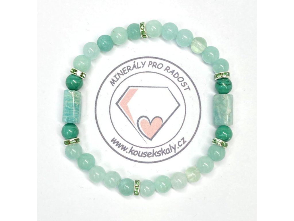 Náramek z amazonitu, fluoritu a malachitu : Cesta k vnitřní síle